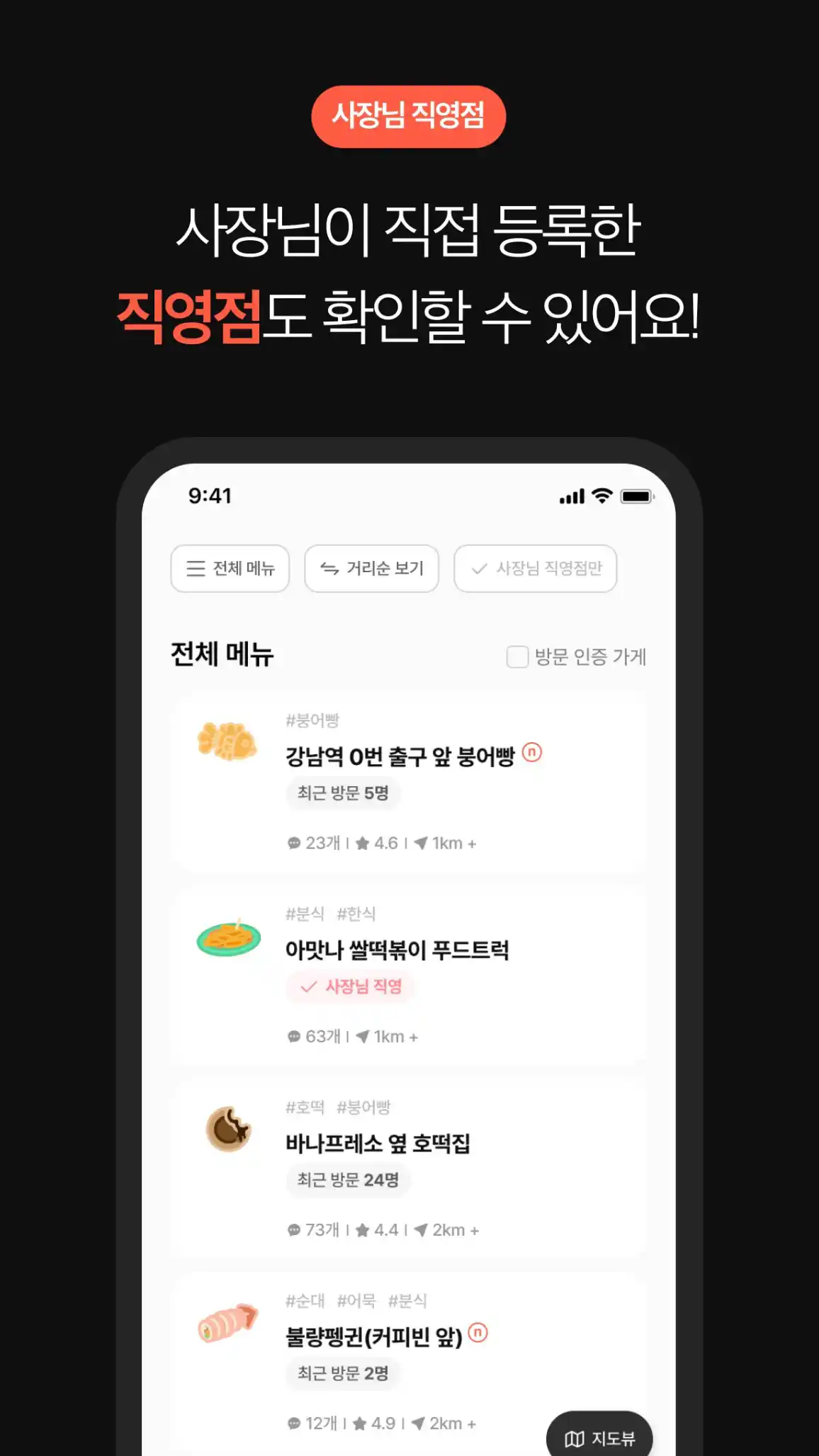 사용자들이 직접 방문한 가게 정보를 추가해 신뢰도를 높였습니다.