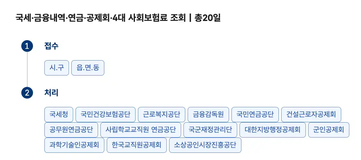 1) 국세·금융내역•연금•공제회•4대 사회보험료 조회